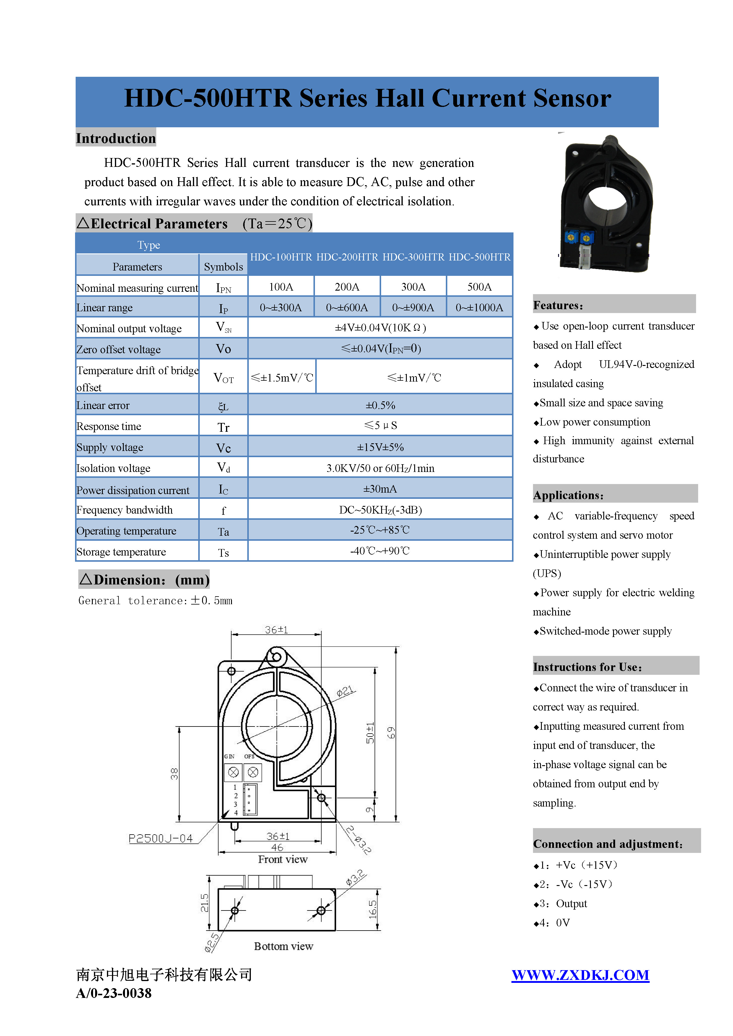 HDC-500HTR系列霍爾電流傳感器是應用霍爾效應原理的新一代電流傳感器,能在電隔離條件下測量直流、交流、脈沖以及各種不規(guī)則波形的電流。